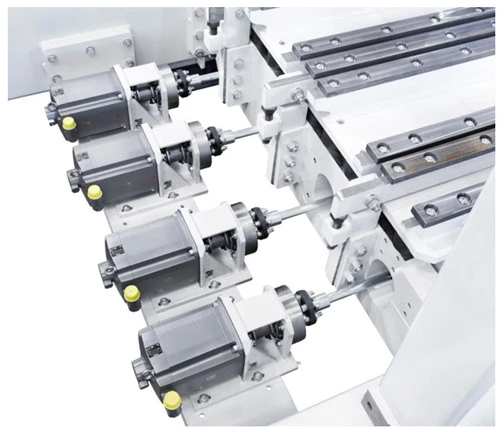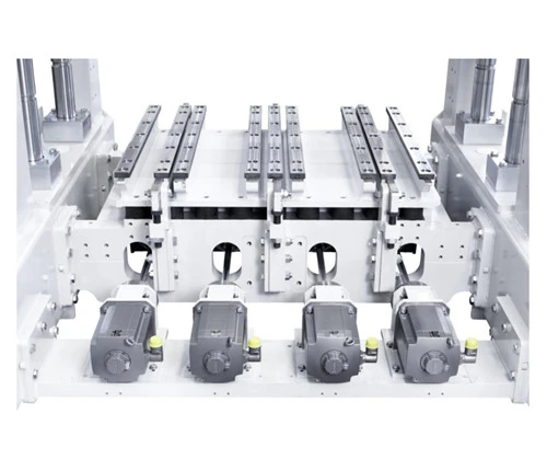 systém sa dokáže flexibilne prispôsobiť rôznym potrebám výroby betónových výrobkov. ● Osem vibračných jednotiek s mechanickým vyvážením individuálne nastaveným ôsmimi servopohonmi ● Osem hriadeľov motora s elastickými spojkami ● Osem servomotorov, každý namontovaný na externom priečnom nosníku na izoláciu vibrácií na ráme motora ● Vibračný stôl nevyžaduje olejový kúpeľ (ekologický)