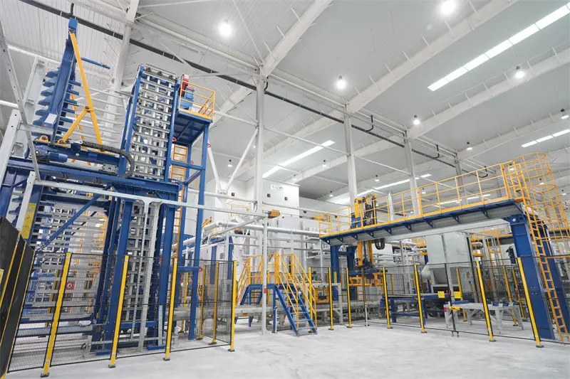 Strojová výrobná linka QGM má plne automatizovaný dizajn a je vybavená pokročilým zariadením, ako je servo paletizačný systém a plne automatický systém pre matku a dieťa, ktorý nezávisle vyvinula spoločnosť QGM, čím sa realizuje úplná automatizácia procesov od spracovania surovín až po stohovanie hotových produktov. Spomedzi nich vysoko presný polohovací systém a inteligentný paletizačný robot zabezpečujú stabilnú a efektívnu výrobu, čím sa znižuje celková spotreba energie o 25 % a náklady na prácu o 40 %.