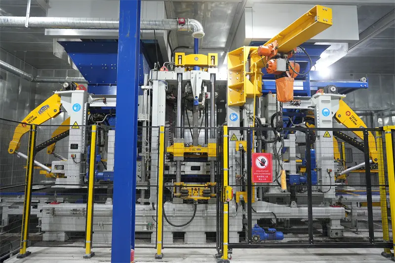 Základné vybavenie výrobnej linky využíva stroj na tvárnenie blokov ZN1500-2C novo vyvinutý spoločnosťou QGM, ktorý integruje množstvo patentovaných technológií. Zariadenie je vybavené inteligentným systémom rýchlej výmeny foriem, ktorý dokáže rýchlo prepnúť na výrobu diverzifikovaných produktov, ako sú tehly na dlažbu a priepustné tehly; založený na priemyselnej internetovej platforme, realizuje monitorovanie a inteligentnú analýzu výrobných dát v reálnom čase, skracuje čas odozvy varovania pri poruche zariadenia o 60 % a výrazne zlepšuje efektivitu prevádzky a údržby.