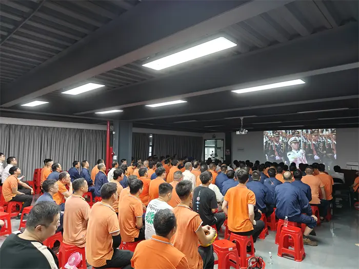 3. september bol dňom veľkého významu pre celý čínsky ľud. V tento špeciálny deň predseda Fujian Quangong Machinery Co., Ltd Fu Binghuang a generálny riaditeľ Fu Xinyuan viedli všetkých zamestnancov v konferenčnej miestnosti spoločnosti, aby sledovali veľkú vojenskú prehliadku a boli svedkami tohto vzrušujúceho historického momentu.