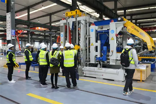 Vstup do inteligentného výrobného workshopu QMG návštevníci pozorovali plne automatický stroj na tvorbu blokov zblízka. Telo stroja s hmotnosťou stoviek ton, hydraulickým systémom s presným prevodom, formou s prispôsobiteľným prepínaním ... „Toto zariadenie sa rýchlo prispôsobuje potrebám zákazníka prostredníctvom modulárneho dizajnu. Viceprezident a jeho strana vysoko uználi, že model dvoma kolesom„ vybavených materiálov zariadenia “„ Building Materials “:„ od predaja celkových roztokov, QMG, QMG skutočne otvorila zelenú reťazovú reťazovú reťazce materiálov. „