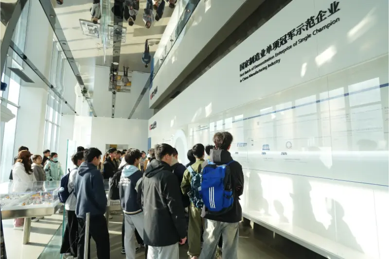 Následne učitelia a študenti navštívili obrábaciu dielňu a vstúpili do popredia inteligentnej výroby. V dielni pracovali vysokou rýchlosťou CNC obrábacie centrá a automatizované montážne linky, robotické ramená precízne dokončovali rôzne operácie a digitálny výrobný systém zobrazoval priebeh výroby a údaje monitorovania kvality v reálnom čase, čo demonštrovalo synergický efekt „zelenej továrne“ a „inteligentnej dielne“. Firemní technickí experti previedli učiteľov a študentov celým procesom od spracovania surovín až po montáž zariadení so zameraním na vysvetlenie aplikácie kľúčových technológií ako je prepojenie CNC zariadení a presné snímanie stavu výroby. Študenti aktívne spolupracovali s technickými odborníkmi, diskutovali o otázkach, ako je optimalizácia spracovania a techniky údržby zariadení, čím sa vytvorila silná vzdelávacia atmosféra na mieste.